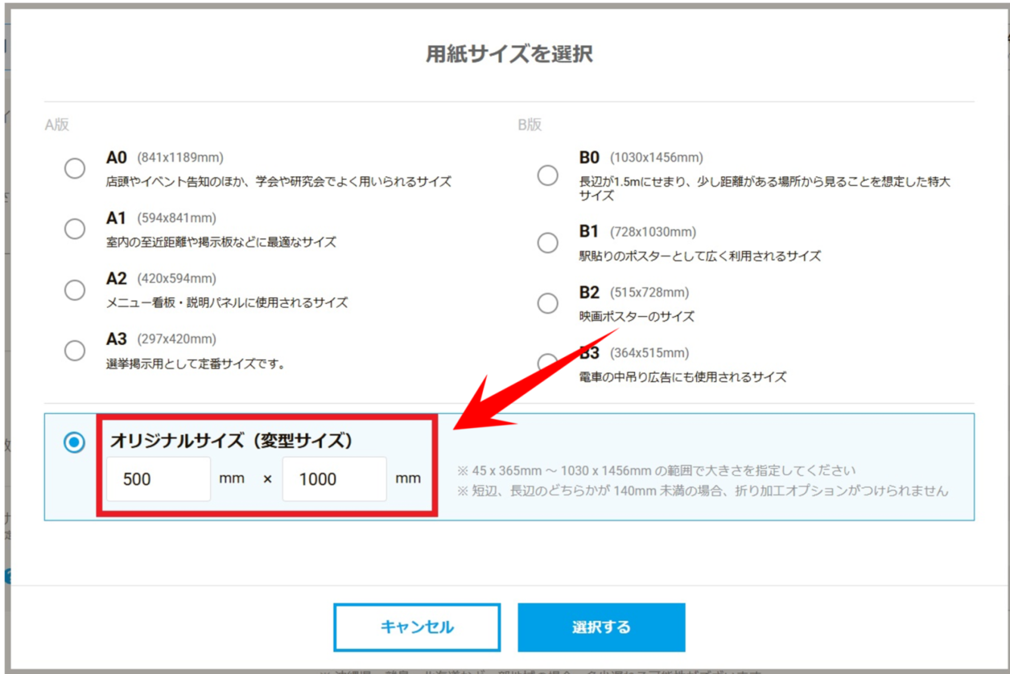 ※ご注文方法について、詳しくはオリジナルサイズ(変型)のポスター 注文操作ガイドをご覧ください。